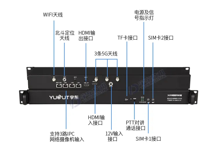 YD-GB8010-1U產品采用H.265超高壓縮算法,無線網絡自適應視頻編碼和傳輸技術,最大限度地有效利用傳輸帶寬,保證視頻傳輸的清晰度和流暢性,在無線網絡帶寬不是很穩定的環境下,傳輸效果遠超國內外同類產品。設備基于先進的H.265視頻編碼技術和5G無線信道捆綁傳輸技術開發的新一代產品。支持5G+4G網絡捆綁模式,可捆綁兩張不同運營商數據卡鏈路同時工作。解決了目前5G前期覆蓋盲點較多的問題,真正實現了5G/4G完美融合(5G+4G多卡為選配,標配為5G單卡)